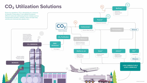 Widening CO2 use with reliable technologies. The transition to low-CI fuels relies on a progressive switch from fossil feedstocks to renewables. The emerging eFuels markets increase the possibility to meet emissions-reduction objectives, monetize CO2 use, advance low-carbon electricity and grow demand for clean and concentrated CO2.