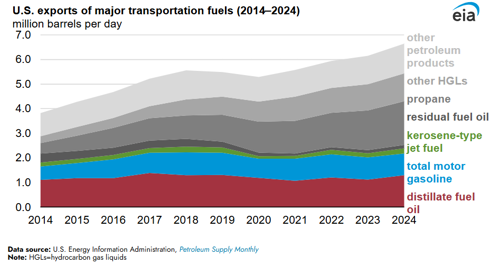 EIA: Distillate and jet fuel contribute to record U.S. petroleum product exports in 2024
