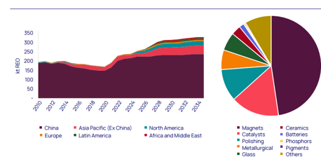 FIG. 1. Rare earth elements refined supply outlook (left) and rare earth applications (right).