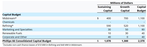 Phillips 66 announced its 2026 capital budget of $2.4 billion, including $1.1 billion for sustaining capital and $1.3 billion for growth capital.