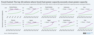 India, Saudi Arabia, Russia and Indonesia are other major economies with a similarly fossil fuel-heavy power capacity reliance, GEM data shows.