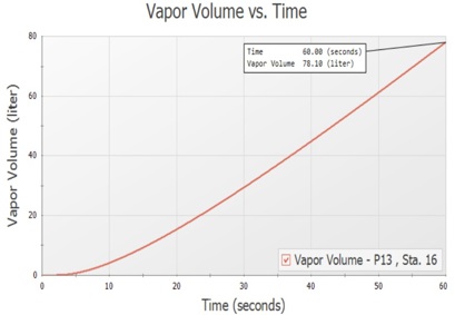 To find out the maximum vapor volume (pocket size) of this cavity, further analysis was completed by analyzing the vapor volume profile in the piping during this transient scenario of the pump trip.