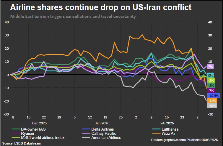 THE PROFIT HIT. The hit to margins will depend on the conflict's duration and the ability of individual airlines to offset rising costs. Some may be able to raise ticket prices because they rely more on premium cabins and corporate travelers.